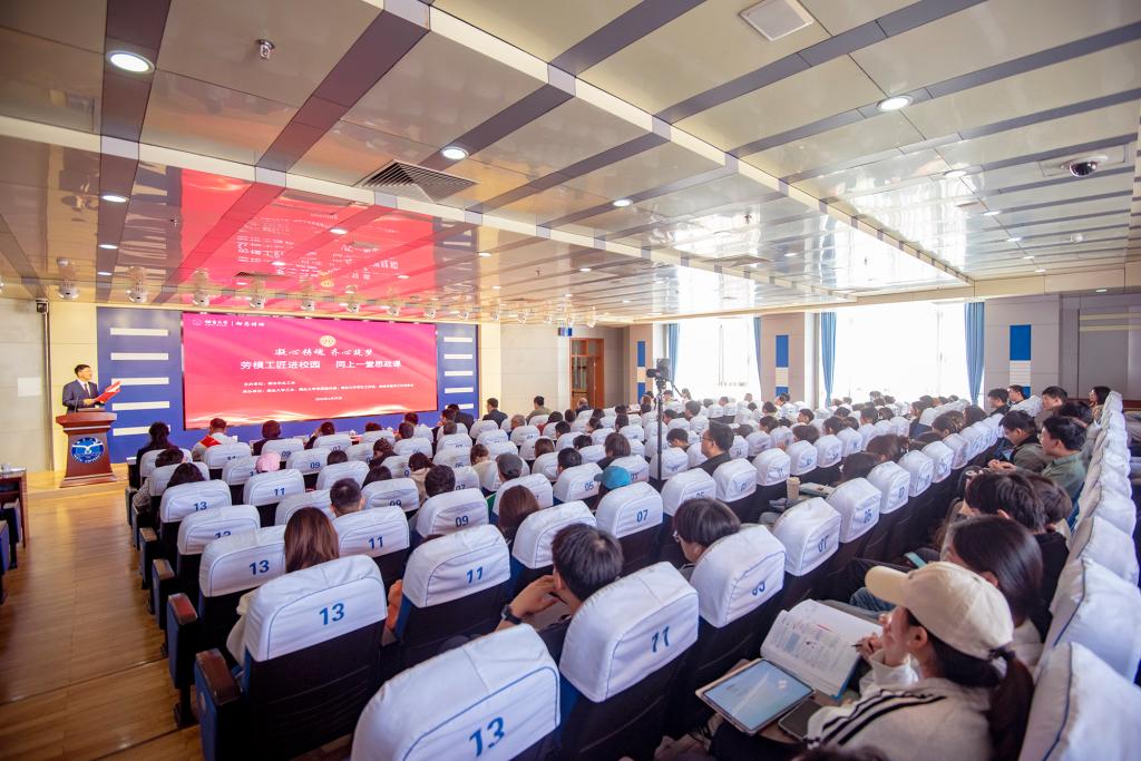 宣讲会现场,师生们被劳模的奋斗故事深深感染,“今天聆听了三位劳模的优秀事迹,让我深受鼓舞和激励。”经济管理学院学生张晓晗表示,“我要以劳模精神为帆,以工匠精神为桨,以劳动精神为动力,扎实学习、努力奋斗,在新时代的浪潮中激扬青春力量。”