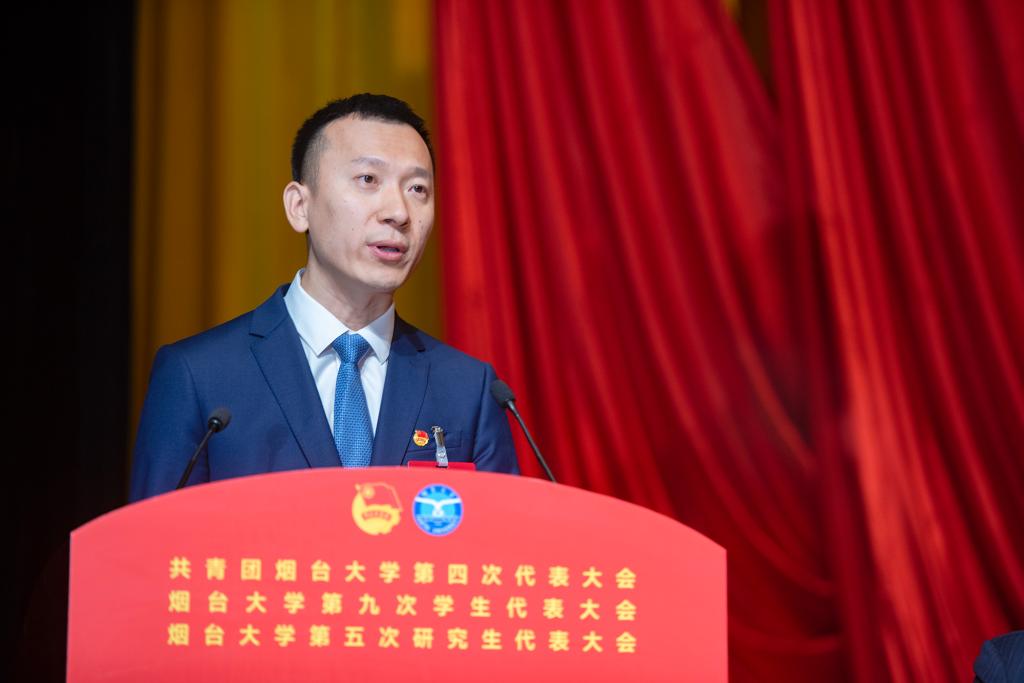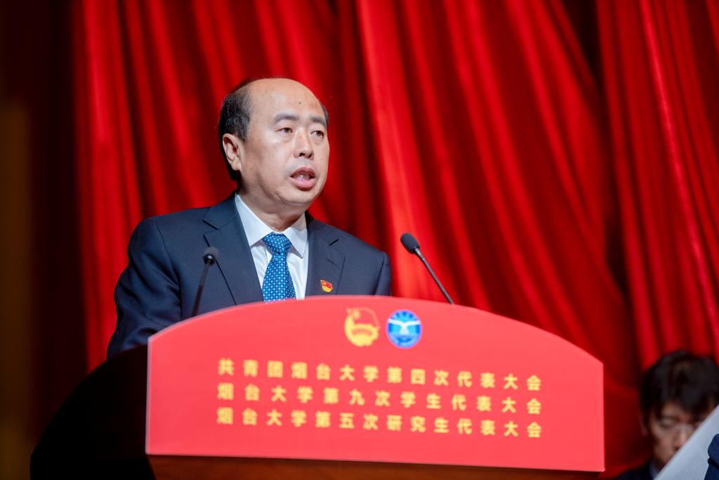 党委副书记、校长郝曙光代表学校党委向大会的召开表示热烈祝贺,向长期以来关心支持学校共青团工作的上级团组织和兄弟院校表示感谢,向各位代表以及全校广大青年学生致以诚挚问候和美好祝愿。他对第三次团代会以来的学校共青团工作给予充分肯定,并向全校各级团组织、广大团员青年和全体团干部提出殷切希望和要求。一是锻造走在前列的先进组织,在新时代伟大征程中挺膺担当。学校共青团要强化思想政治引领,坚持全面从严治团,围绕中心、服务大局。二是淬炼坚强有力的团干部队伍,在无上光荣的伟大事业中建功立业。广大团干部要全面提升能力水平,锤炼扎实工作作风,坚守廉洁自律底线。三是争做能堪重任的青年先锋,在大有作为的广阔天地中勇往直前。广大团员青年要以强国有我的担当扛牢使命,以好学不倦的态度增强本领,以创新求变的精神突破局限。他号召广大团员青年大力弘扬“海纳百川、敢为人先”的烟大精神,让青春在推进学校事业高质量发展、为实现中华民族伟大复兴的不懈奋斗中绽放绚丽之花。