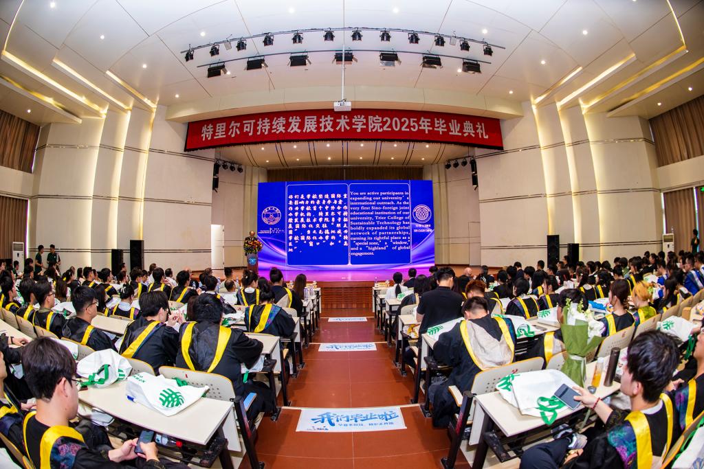 【本站讯】初心如磐行致远,云程发轫谱新篇。6月12日下午,特里尔可持续发展技术学院2025届毕业典礼在致道厅举行。党委副书记、校长郝曙光出席典礼并致辞,德国特里尔应用技术大学校长Dorit Schumann通过视频连线方式出席并致辞。党委常委、副校长冯素玲、姚昌,副校长王洪波,德国特里尔应用技术大学应用物质流管理研究院院长Peter Heck,我校党委(学校)办公室、研究生处、学生工作处、环境材料与工程学院等单位负责人,两校教师代表,学生家长代表,学院全体教职工和2025届毕业生共同见证了这一重要时刻。典礼由冯素玲主持。