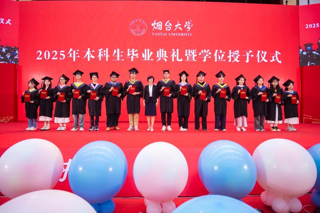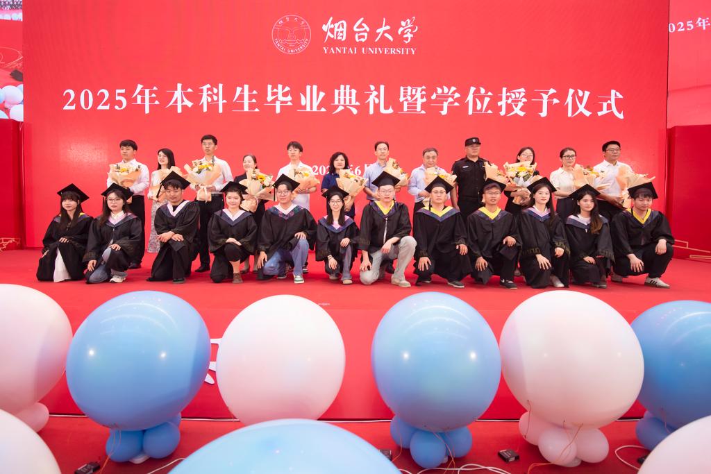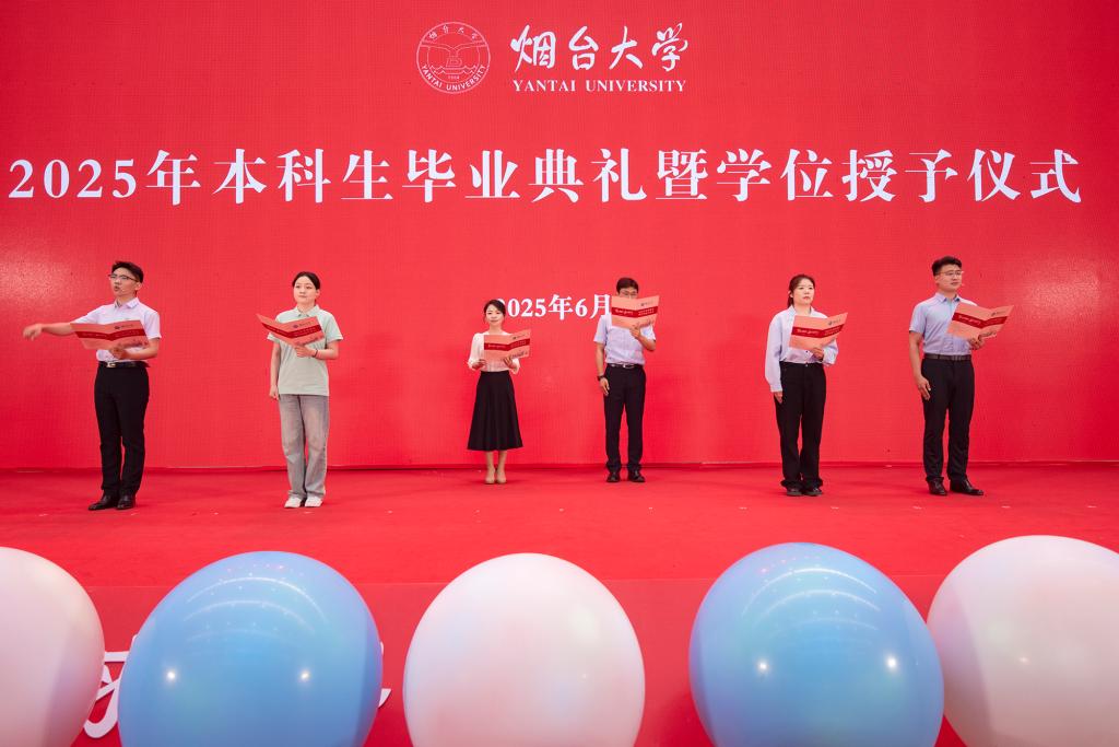 典礼特别设置了师生代表献词环节,专业课教师代表、辅导员代表、毕业生代表以“爱在烟大”为题展开深情对话,用真挚的话语和饱满的情感,共同回顾了毕业生们在烟园的青春岁月,表达了对未来的美好期许和对母校的深情眷恋。