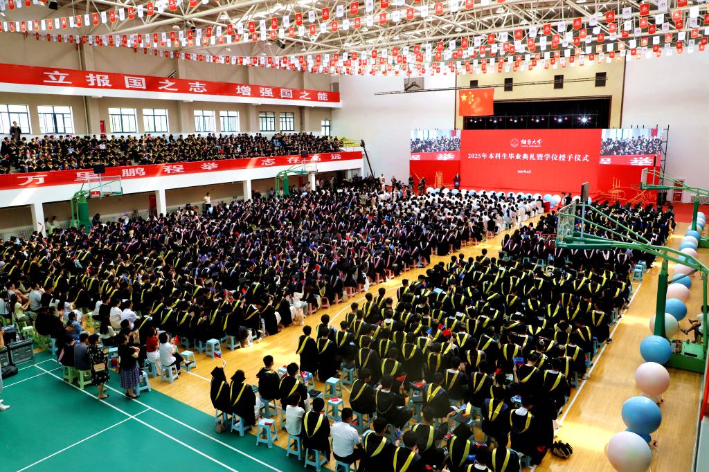 【本站讯】山海之间,骊歌轻唱,离情依依。6月18日、19日,bob体育在线app2025年本科生毕业典礼分别在主校区大学生活动中心和八角湾校区文化艺术中心大礼堂隆重举行。学校领导及党委领导班子成员卢国强、郝曙光、王强、白青、冯素玲、姚昌、张献勇、王丽、初磊、刘伟、王洪波、杨玉军、杨众晖、毕朝辉出席典礼,各学院党组织书记、院长、副书记,毕业年级辅导员,机关各部门、各直属单位主要负责人,校友代表,教职工代表,学生家长代表与2025届本科毕业生齐聚一堂,共同见证这一神圣而荣耀的时刻。在满满的仪式感与青春交织的氛围里,7000余名烟大学子满载收获与梦想在此启程,扬帆踏浪,逐梦远航。毕业典礼分别由党委常委、副校长姚昌、张献勇主持。