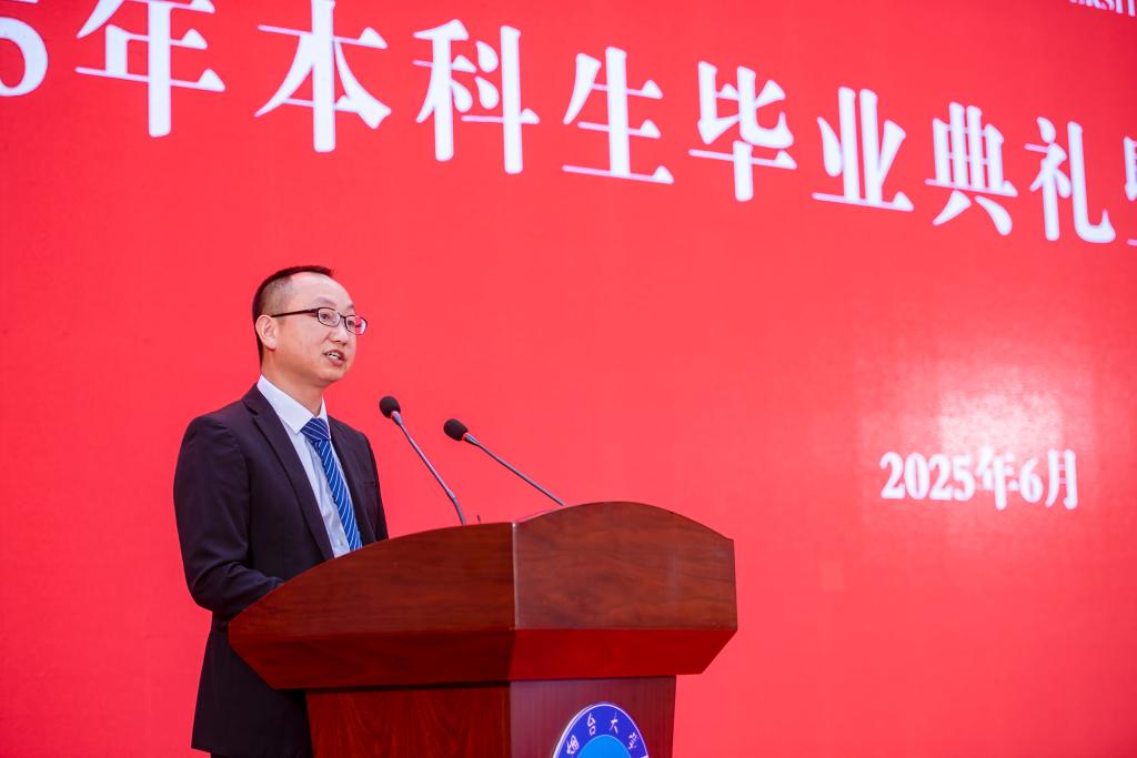毕业典礼上,党委副书记、校长郝曙光饱含深情地发表了题为“以精神之光照征程浩荡 用山海情怀书人生华章”的讲话,以校长、师长、学长的身份,向2025届毕业生表示热烈祝贺,与在场毕业生深情回望了学校发展的美丽画卷,通过“烟大之变、烟大之进、烟大之美”三个维度,生动勾勒出学校与学子同频共振的成长轨迹。郝曙光说道,同学们身上一个个色彩斑斓的青春梦想,在不舍寸功中开花结果,为逐梦前行的伟大时代写下生动注脚,为同学们取得的成绩感到骄傲和自豪。