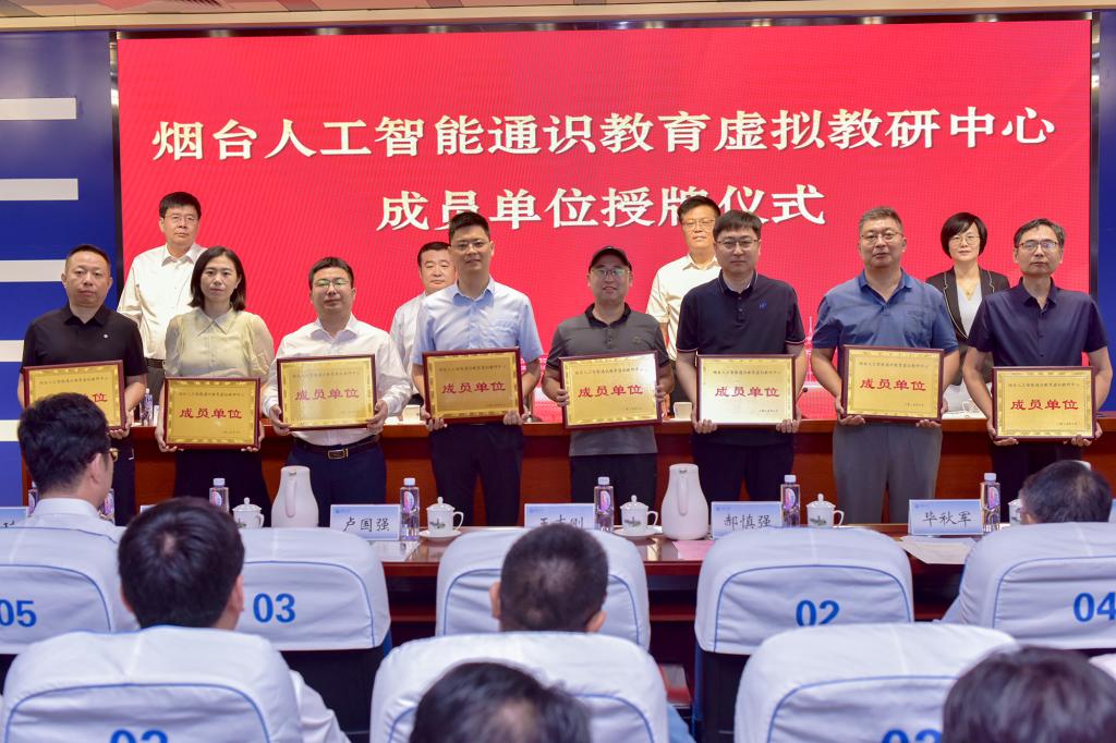 会上,王志刚、卢国强共同为烟台人工智能通识教育虚拟教研中心揭牌,与会领导为教研中心成员单位授牌。
