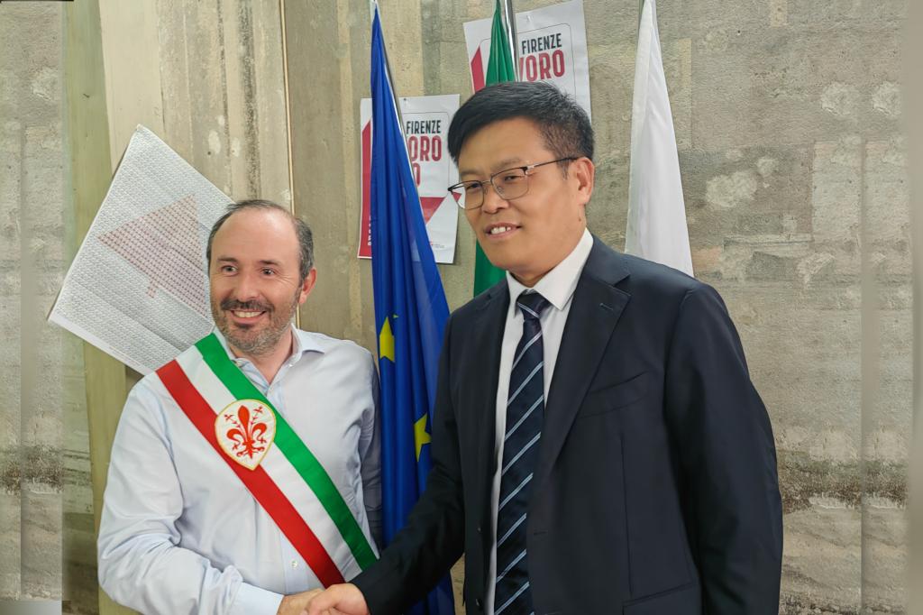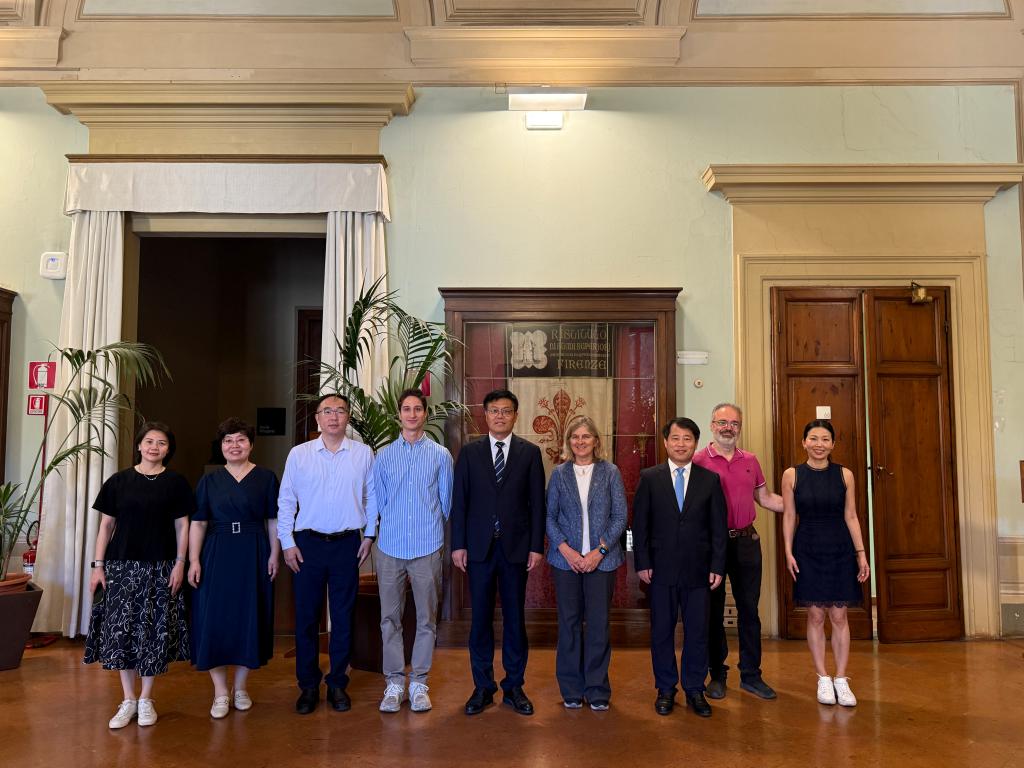 在意大利佛罗伦萨市政府,卢国强向佛罗伦萨市副市长塔里奥·丹迪介绍了烟台营商环境和招商引资政策,提议大力推进两校、两城之间的交流合作。