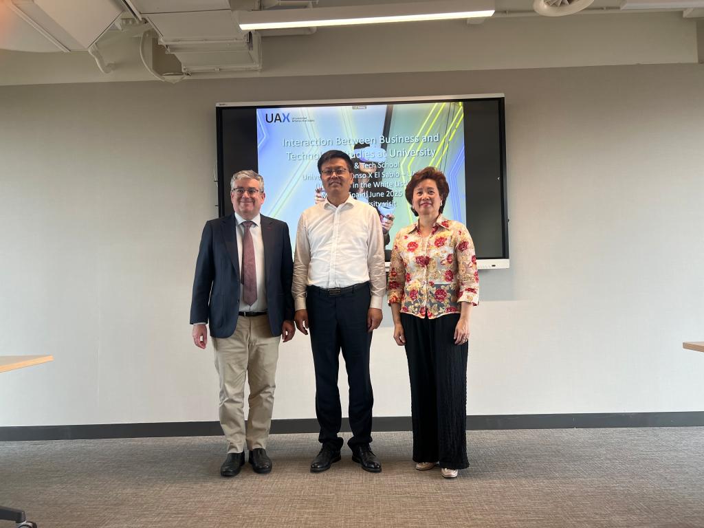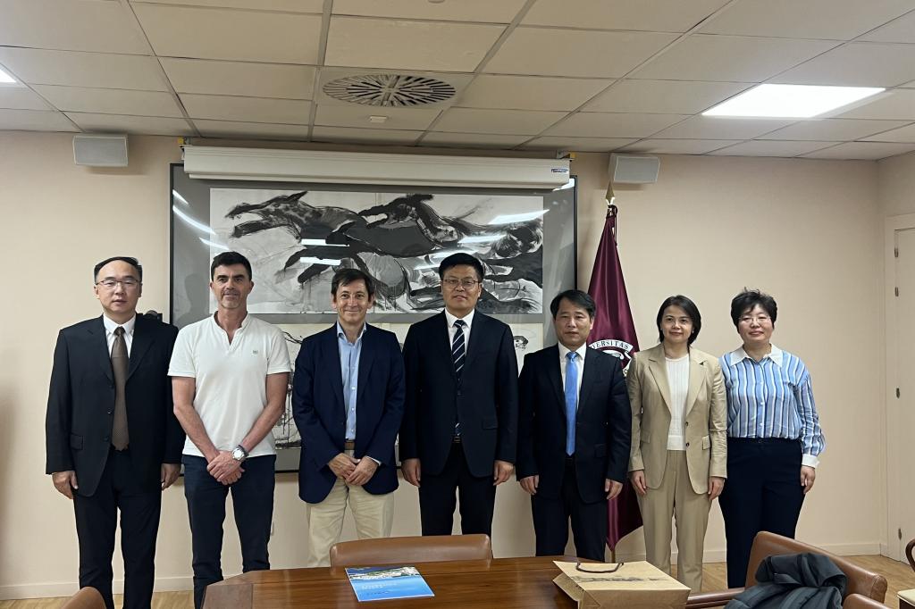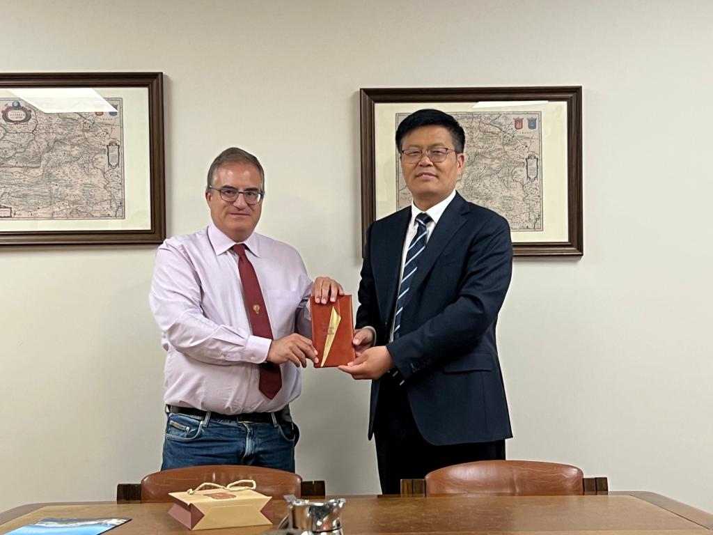 访问西班牙萨拉曼卡大学期间,卢国强一行与副校长劳尔·桑切斯·普列托等座谈交流,双方深入探讨外语教学、西班牙语资格考试等领域合作,表示将积极推动两校教师联合申报科研项目,开展学生本升硕联合培养,合作建设中西交流中心,尽早签署两校合作协议。