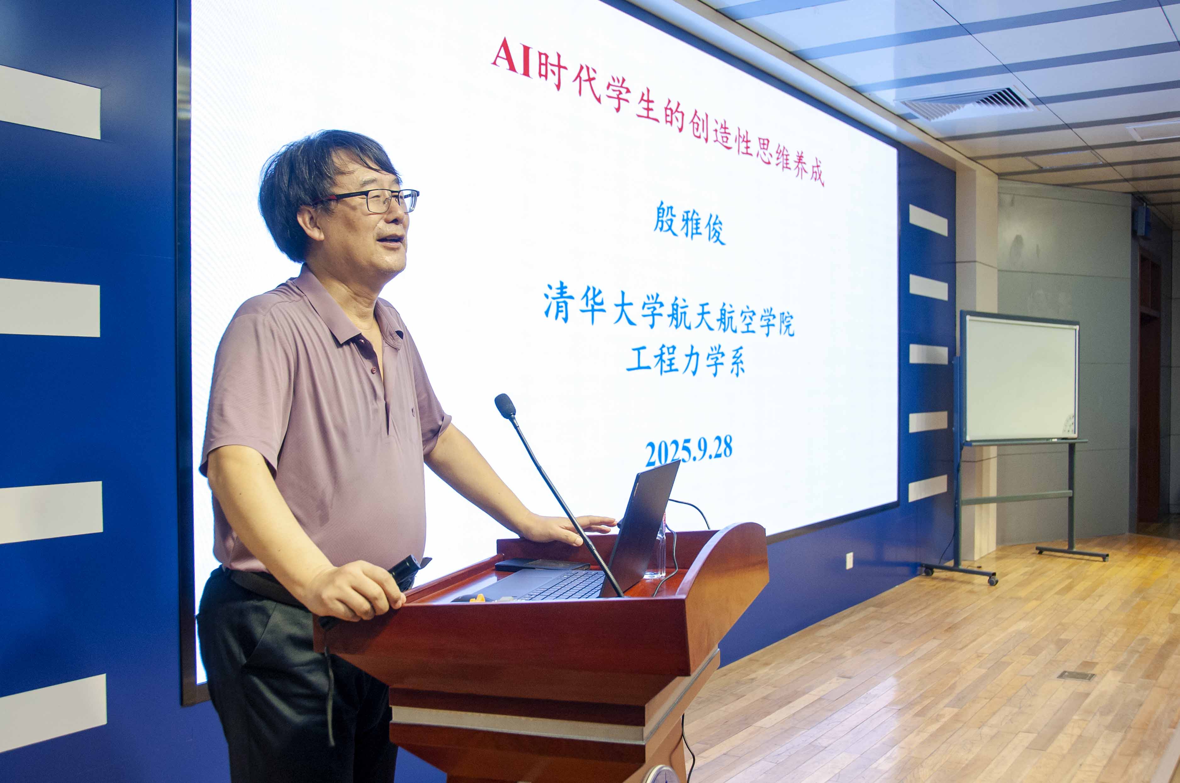 在实验班开班第一课中,殷雅俊教授以学生所学过的知识为基础,通过“AI绘画”“膜管网络的稳定平衡”“蜂巢结构”等实际案例,从实证案例引入理性思维,剖析科学探索的基本范式与三类思维模式,强调多学科融合在AI时代的重要价值,并指出明辨性、辩证性与创造性思维的培养是人才成长的永恒主题。