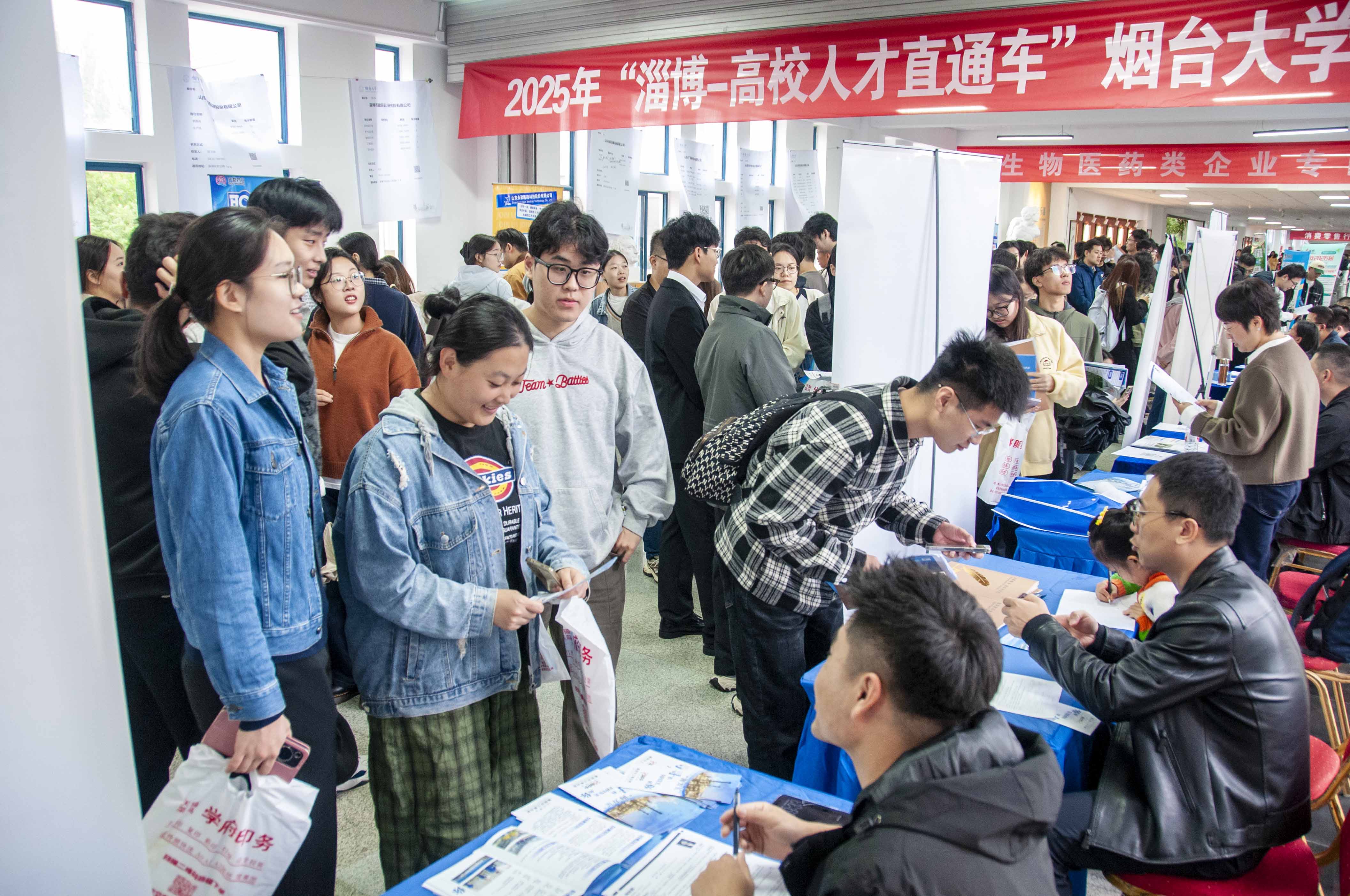 本次招聘会邀请了豪迈集团、歌尔股份、道恩集团、烟建集团、鲁南制药等省内外近400家企事业单位到校招聘,提供职位约1500个、就业岗位约20000个,企业需求覆盖本、硕、博各学历层次,涵盖能源化工、生物医药、装备制造、金融服务、电子信息、教育文化等多个重点行业领域,岗位需求与学校学科专业设置高度吻合,受到校内外毕业生广泛关注。
