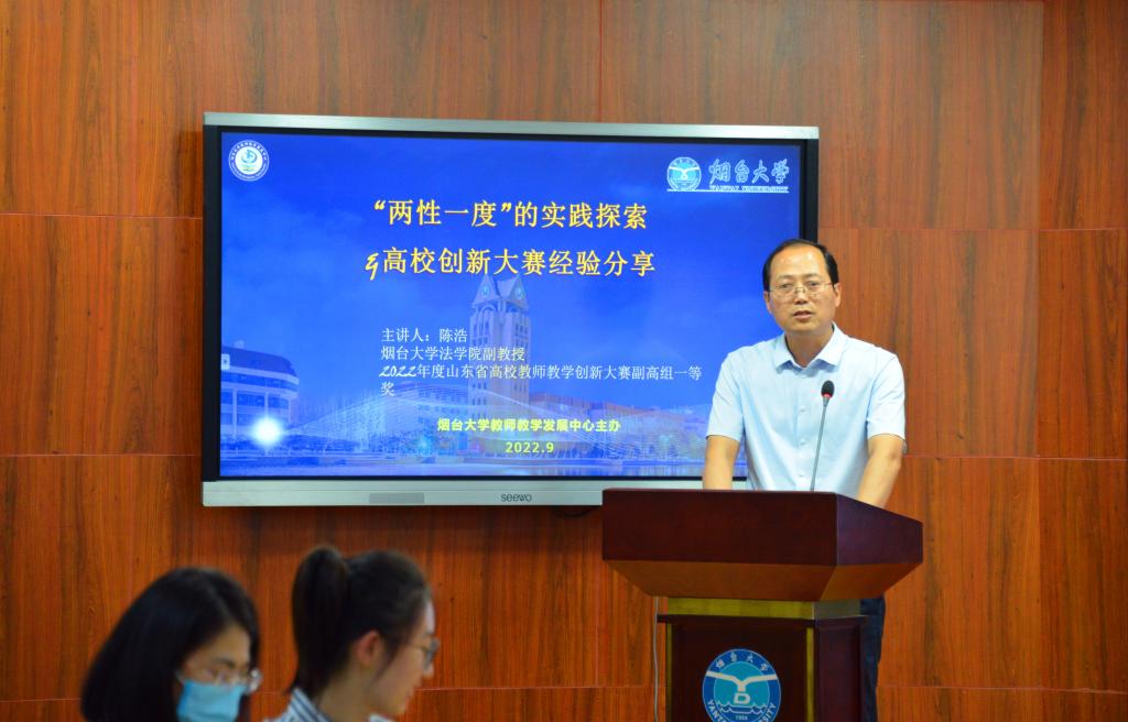 【本站讯】为充分发挥教师教学竞赛的示范引领作用,营造良好的教学文化氛围,提高教师教学能力和水平,激励广大教师参加各类教学比赛的积极性,9月30日下午,bob体育在线app教师教学发展中心在综合楼举办教师工作坊培训活动,邀请2022年度山东省高校教师教学创新大赛副高组一等奖获得者、法学院陈浩副教授分享参加大赛的经验。本次工作坊采用线上线下结合的方式进行,100余位教师聆听了专题讲座并进行了互动交流,活动由教务处处长李庆忠主持。