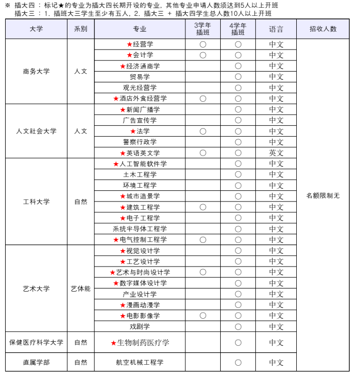 插班大四:限制前置专业,三年制大专生,专业学分48学分以上获得者