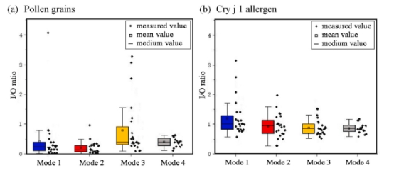 日本杉木花粉和它的Cry j 1过敏原是日本花粉症的主要诱因。研究团队基于现场测量,探讨了不同室内换气次数(ACH)对日本杉花粉和Cry j 1室内/室外(I/O)比的影响,以及在四种阳台门窗开启模式下含Cry j 1过敏原的颗粒尺寸变化。论文共分析了220个花粉样本和484个过敏原样本。结果显示,即使在所有门窗关闭的情况下,室内仍然存在日本杉木花粉和Cry j 1过敏原。并且,Cry j 1过敏原的I/O比随着ACH的增加而下降,且Cry j 1过敏原常见于直径不大于7μm的颗粒中。论文详细阐述了杉木花粉和Cry j 1过敏原在典型家居环境中的室内外传输动态,并致力于为室内过敏原检测和过滤方面的相关研究提供数据支撑。
