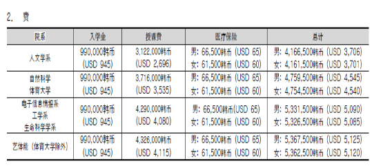 ※ 世宗国际奖学金适用于A~E,根据2015年6月30日截止时间内提交的(语言成绩,推荐信等)为依据。