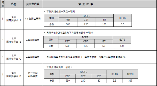 ※ 条件入学的合格者,会根据提交的复学语言成绩为依据颁发奖学金。