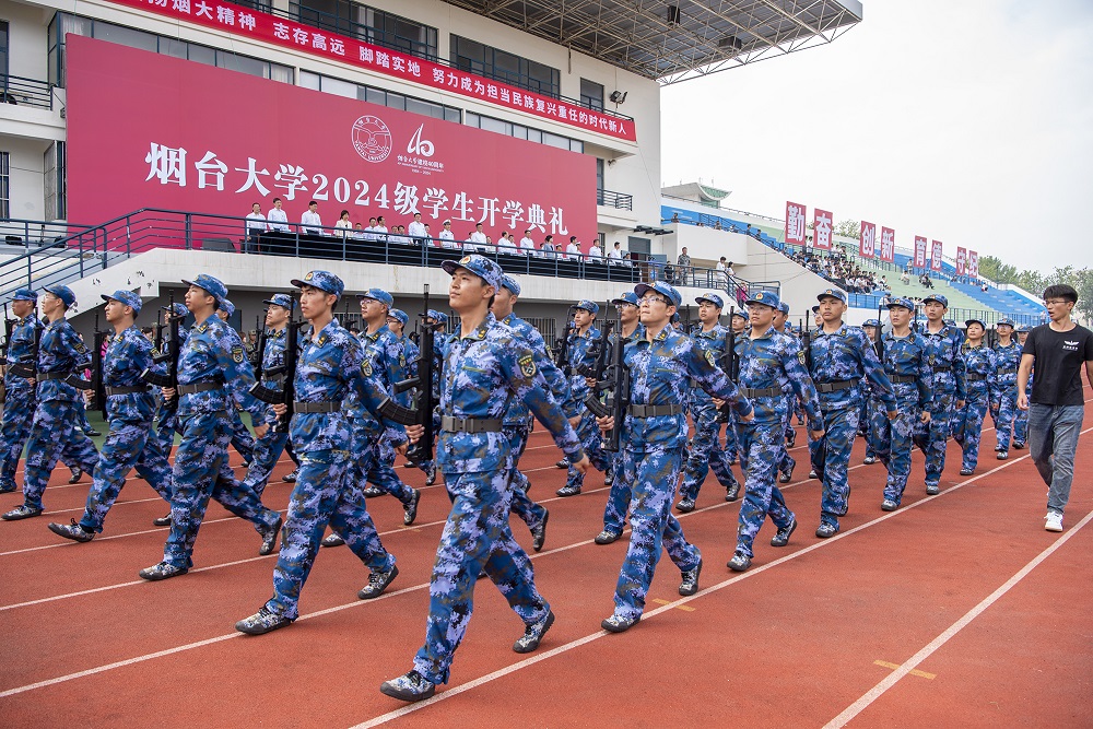 “军训成果展示开始!”随着党委书记卢国强一声令下,由2024级本科新生组成的19个方队迈着坚定的步伐依次走过主席台前接受检阅。朦胧细雨将歇的运动场上,金黄的阳光穿透云雾,倾洒在热情饱满、身姿挺拔、步伐有力的“迷彩蓝”上,伴着一声声嘹亮的口号,构成了烟园中绚烂斑斓的青春图景,交织出绿茵上热血逐梦的难忘记忆。
