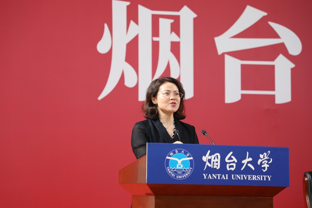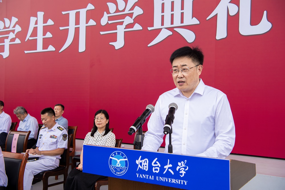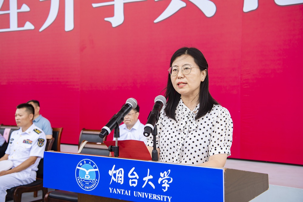 在师生、校友代表发言环节,教师代表、物理与电子信息学院王晓丽老师用“梦想”“成长”与“创新”三个关键词,勉励全体新生在烟大的沃土上播种梦想,收获成长;生命科学学院院长孙利芹老师寄语新生学子锤炼追求热爱的能力,涵养高贵的品格,成为更好的自己。