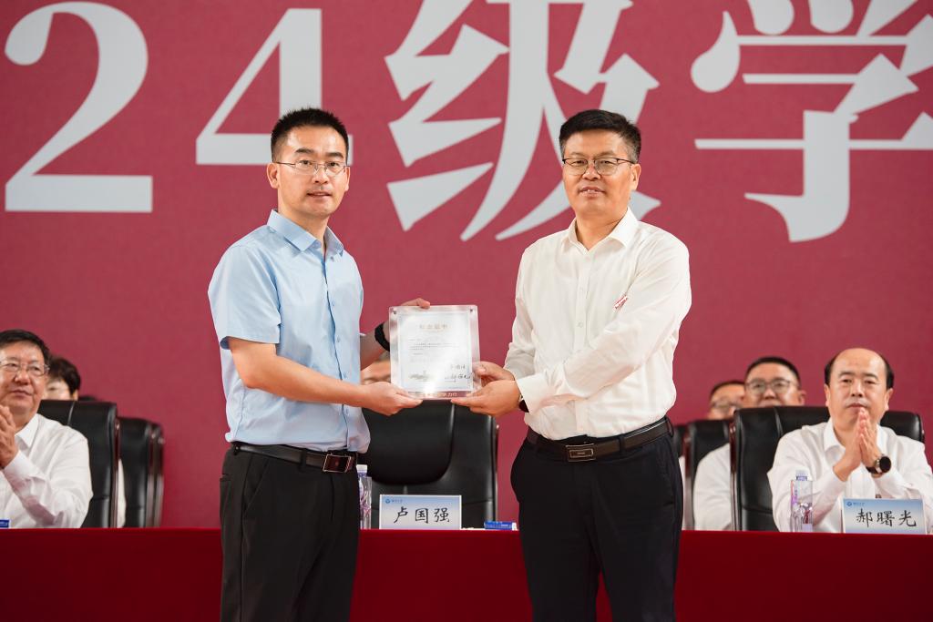 随后,出席领导为2024级新生代表佩戴校徽,一枚小小的徽章,融铸着“海纳百川,敢为人先”的烟大精神,承载着“守信、求实、好学、力行”的校训内涵,也寄托着烟大对学子最深沉的殷切期盼。