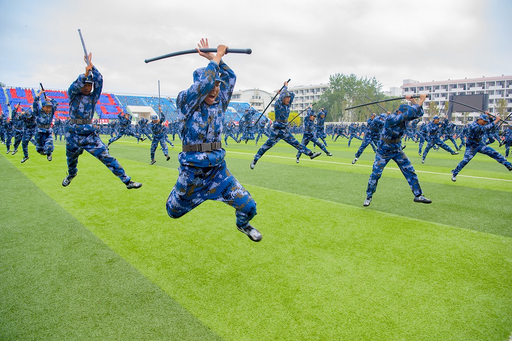开学典礼在雄壮的国歌声中拉开序幕。“听吧,新征程号角吹响!”看台上,一千五百余名新生热血唱响《强军战歌》,铿锵的旋律与激昂的歌声交织奏响烟大学子的青春强音。绿茵场上,应急棍术表演和女子匕首操表演轮番上场,一招一式坚定有力,挥臂踢腿英姿飒爽,嘹亮口号响彻不断,生生不息的青春活力将全场气氛瞬间点燃。