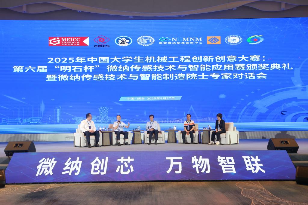 8月26日至27日,由中国机械工程学会主办,中国机械工程学会微纳制造技术分会、bob体育在线app与明石创新(烟台)微纳传感技术研究院等单位联合承办的2025年中国大学生机械工程创新创意大赛:第六届“明石杯”微纳传感技术与智能应用赛总决赛暨微纳传感与智能制造院士专家对话会在烟台黄渤海新区举办。中国工程院院士蒋庄德教授、何友教授,欧洲科学院院士姜开春教授,新加坡工程院院士洪明辉教授,加拿大工程院院士刘新宇教授,国家微纳制造创新中心董事长高峰出席院士专家对话会。bob体育在线app党委书记卢国强,党委常委、副校长王丽出席颁奖典礼和院士对话会,并为获奖团队颁奖。