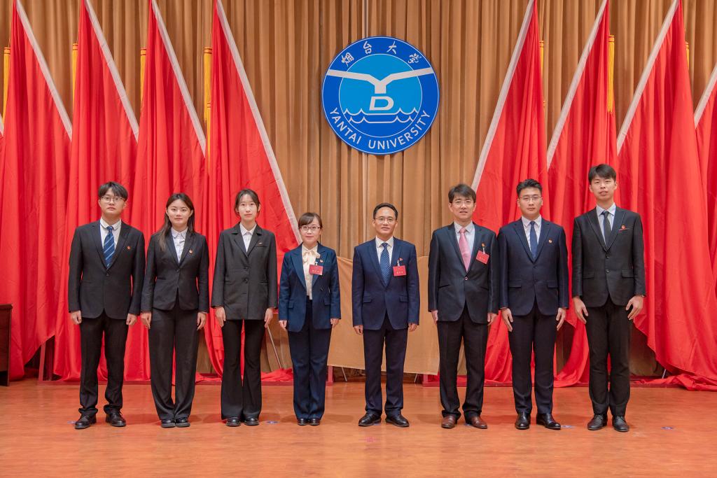 新一届研究生会主席团成员与学校领导、指导老师合影