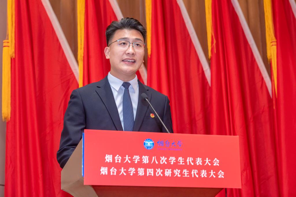 挺膺担当砺青春,奋楫笃行向未来。为深入学习贯彻习近平新时代中国特色社会主义思想,贯彻落实团十九大和全国学联二十七大精神,进一步保持和增强学生会组织的政治性、先进性和群众性,发挥学生会组织和学生代表的桥梁纽带作用,11月18日上午,bob体育在线app第八次学生代表大会、第四次研究生代表大会在致道厅召开。党委书记张殿臣出席会议并作题为《挺膺担当,踔厉奋发,为实现中华民族伟大复兴中国梦奏响青春强音》的讲话。共青团烟台市委书记相福亮出席会议并致辞。党委常委、副校长郝曙光、姚昌出席会议。