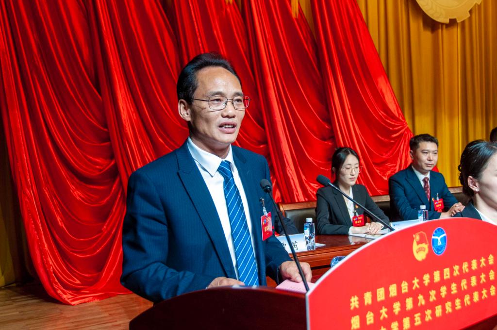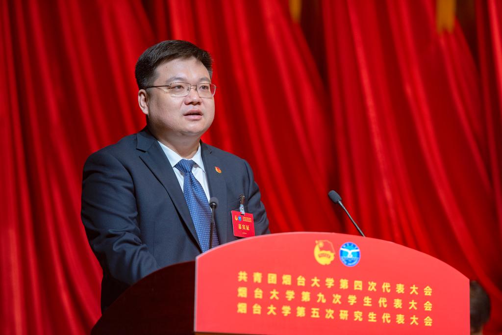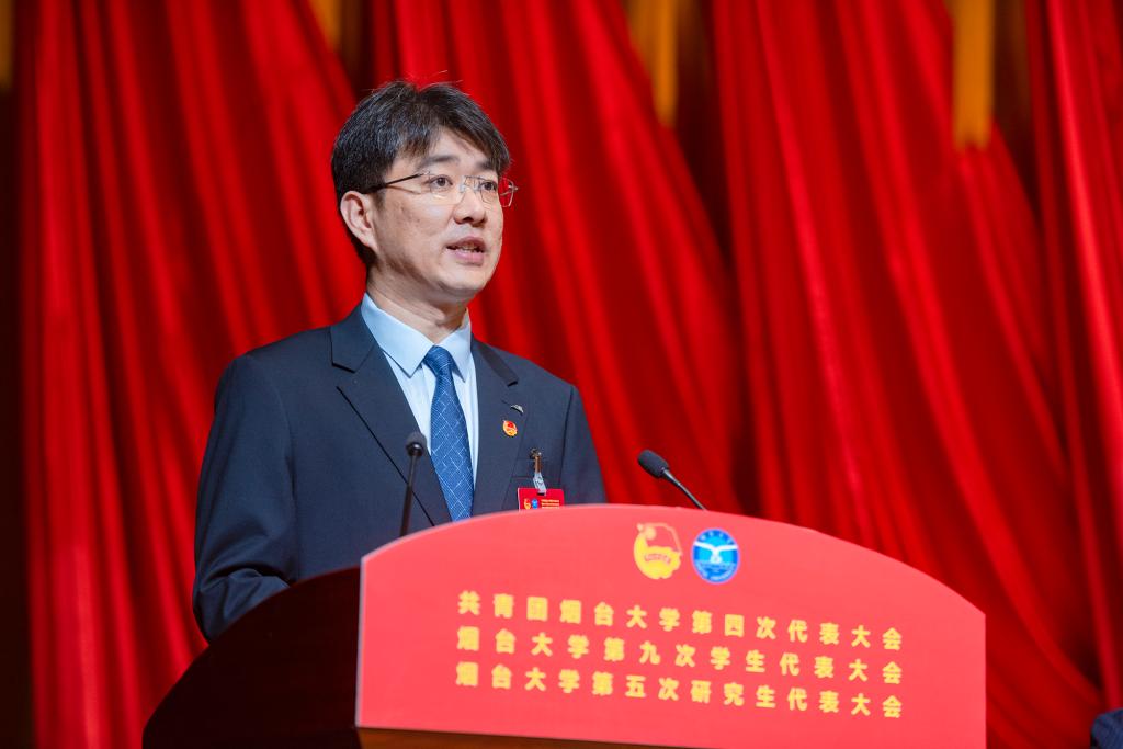党委副书记、校长郝曙光代表学校党委向大会的召开表示热烈祝贺,向长期以来关心支持学校共青团工作的上级团组织和兄弟院校表示感谢,向各位代表以及全校广大青年学生致以诚挚问候和美好祝愿。他对第三次团代会以来的学校共青团工作给予充分肯定,并向全校各级团组织、广大团员青年和全体团干部提出殷切希望和要求。一是锻造走在前列的先进组织,在新时代伟大征程中挺膺担当。学校共青团要强化思想政治引领,坚持全面从严治团,围绕中心、服务大局。二是淬炼坚强有力的团干部队伍,在无上光荣的伟大事业中建功立业。广大团干部要全面提升能力水平,锤炼扎实工作作风,坚守廉洁自律底线。三是争做能堪重任的青年先锋,在大有作为的广阔天地中勇往直前。广大团员青年要以强国有我的担当扛牢使命,以好学不倦的态度增强本领,以创新求变的精神突破局限。他号召广大团员青年大力弘扬“海纳百川、敢为人先”的烟大精神,让青春在推进学校事业高质量发展、为实现中华民族伟大复兴的不懈奋斗中绽放绚丽之花。